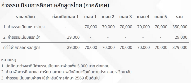 | ค่าใช้จ่ายตลอดหลักสูตร | 29,000 | 70,000 | 70,000 | 70,000 | 70,000 | 70,000 | 379,000 |